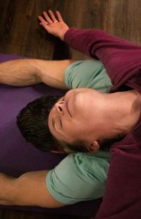 Katie Schutte stretches over Scott Schutte during a partnered yoga pose at a couple’s yoga workshop Friday at Sumit’s Hot Yoga in Columbia. The Schuttes have been married for more than three years. This is their first workshop since their child’s birth. “It’s our first night out since we had a baby. It’s an extra chance to connect and work together,” Schutte said.