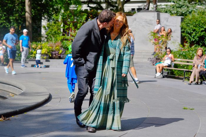 Hello! I, a bitter decrepit hag, am here to inform you that J.Lo and her long-lost-but-reunited beau Ben Affleck are wildly happy and in love. You already saw? Well, let me shove more evidence in your face. The extremely public couple spent a glorious Sunday afternoon in New York City, kissing (without masks!), holding hands, and generally looking like a rom-com montage. Never in my life have I felt more dull and repressed than when beholding this radiant couple unencumbered by the weight of the world. Behold: